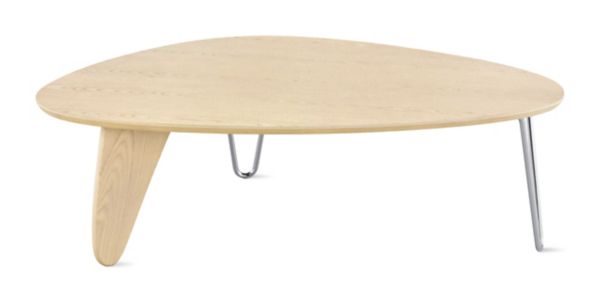 Noguchi rudder table white ash 154500 an updated archival piece from 1949 this sculptural and deceptively simple coffee table by isamu noguchi stands on 2 chrome hairpin legs and 1 in wood reminiscent of a ships rudder. Die beine des eleganten und leicht. It stands on two chrome hairpin legs and one in wood reminiscent of a ships rudder. At a quick glance the subtle metal hairpin legs almost disappear suggesting the top rests solely on the rudder.